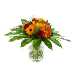De combinatie van oranje en rode bloemen geven het bladboeket een gezellige en chique uitstaling. Een boeket dat in vrijwel elk interieur past. Bovendien geschikt voor verschillende gelegenheden. Feliciteer, bedankt of verstuur zomaar dit prachtige handgebonden boeket en verras de ontvanger! * Exclusief accessoires en vaas